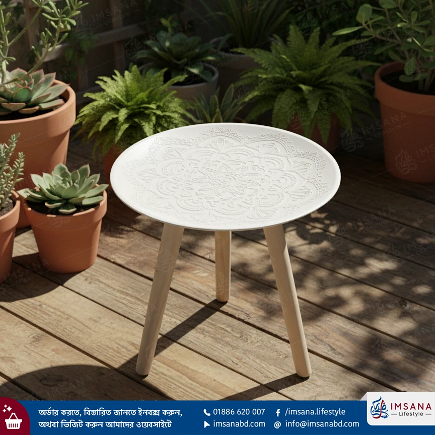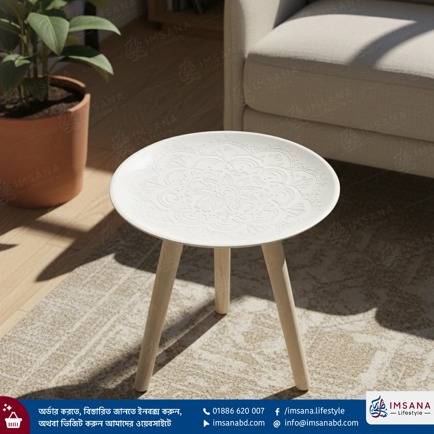 আপনার লিভিং রুম, বেডরুম বা বারান্দার সাজসজ্জায় এক নতুন মাত্রা যোগ করতে ইমসানা লাইফস্টাইল (Imsana Lifestyle) নিয়ে এলো এই মডার্ন এবং এলিগেন্ট সাদা রাউন্ড সাইড টেবিল। এর মিনিমালিস্ট ডিজাইন এবং ক্লাসিক সাদা রঙ যেকোনো ধরনের ইন্টেরিয়রের সাথে খুব সহজেই মানিয়ে যায়।